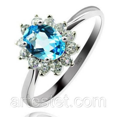 Ніжне кільце виготовлене зі срібла 925, покриття батьківщиною з натуральним Swiss топазом
