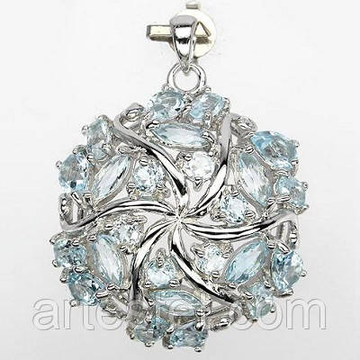 Підвіска зі срібла 925, покриття білим золотом 14К з натуральним SKY BLUE топазом